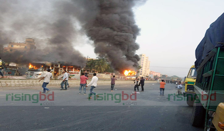 During this time, a chase and counter chase took place between the attackers and activists and leaders of BNP staying there. The miscreants vandalized some vehicles and set fire to two public buses which were parked before Mohipal Filling Station near Feni Circuit House.
