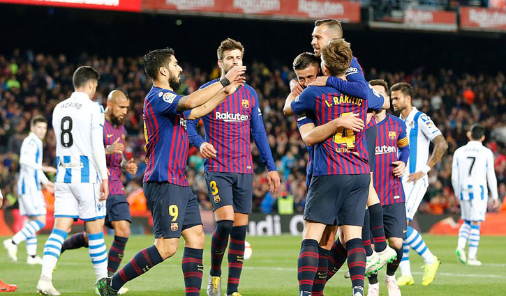 Sports Desk: Jordi Alba once again showed his potency in attack by scoring the winner against Real Sociedad as Barcelona closed in on the La Liga title.