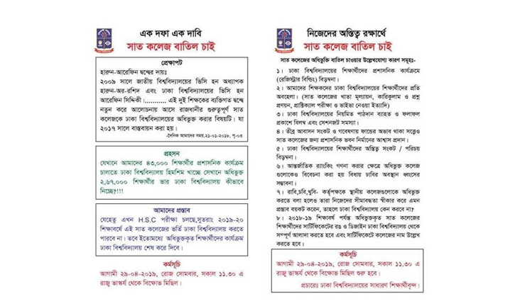 Staff Correspondent: The general students of Dhaka University have demanded removal of seven affiliated city colleges.