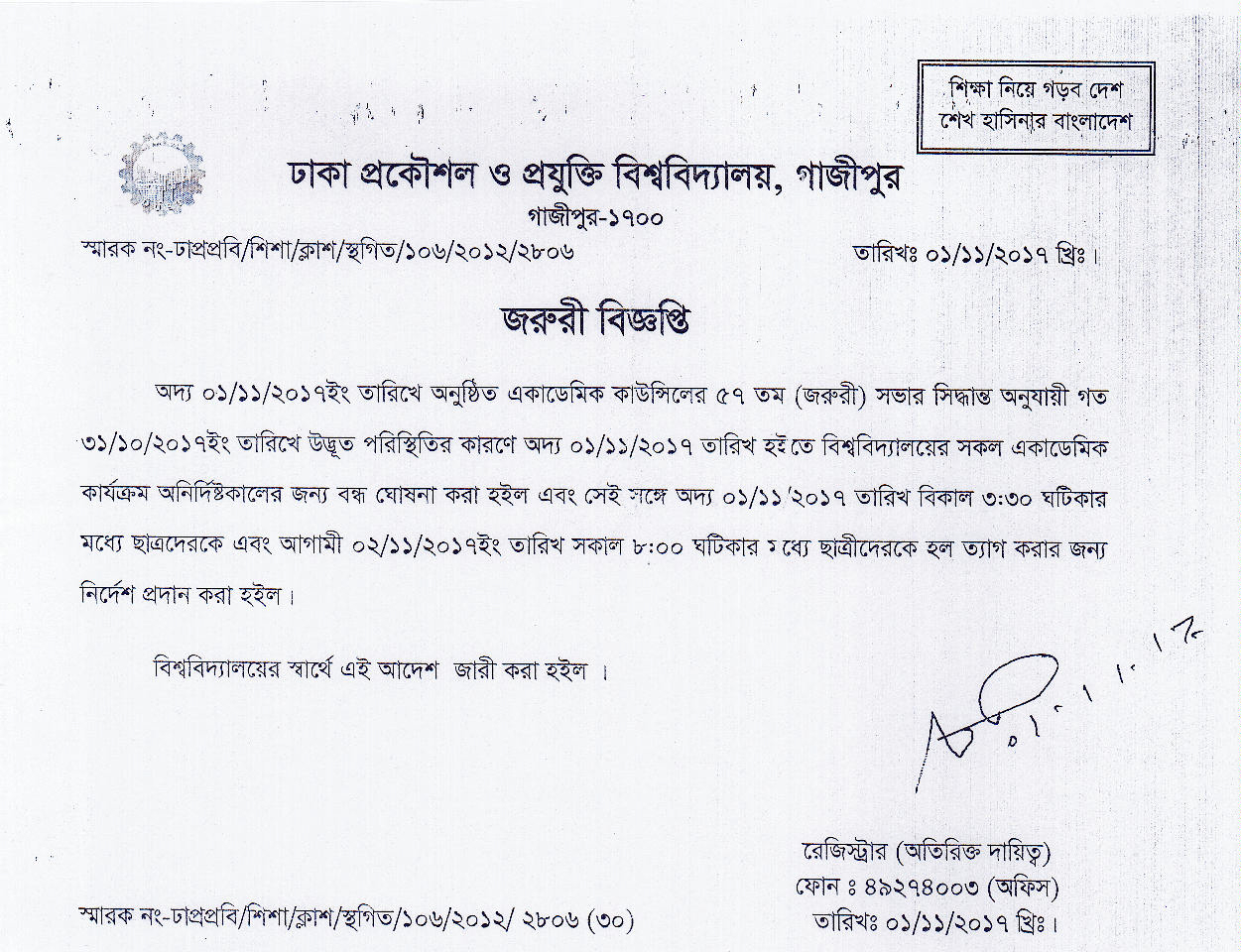 Staff Correspondent, Gazipur: Dhaka University of Engineering and Technology (DUET) has been closed for indefinite period following the clashes in the institution.