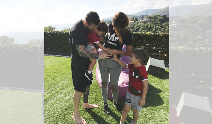 On Mother's Day in Argentina, Roccuzzo posted a picture of the couple and two sons Thiago, 4, and Mateo, 2, touching her stomach, with the caption "Family of five".