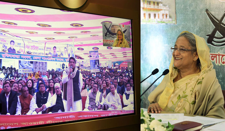 The prime minister was addressing election rallies in Chandpur, Kushtia and Naogaon districts through a videoconference from her Sudha Sadan residence at Dhanmondi here this afternoon.