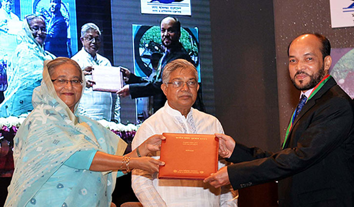 The prime minister distributed awards among 13 fish farmers and organisations for their contribution to the development of the fisheries sector.