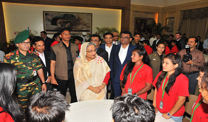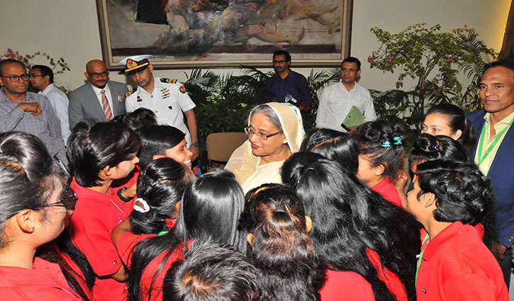 Sports Correspondent: Prime Minister Sheikh Hasina accorded a reception to the players of Bangladesh Under-16 Women Football Team for becoming the Group F champion in the recently held AFC Under-16 Women’s Championship.