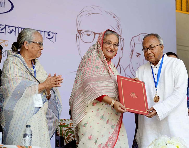 On behalf of Suhrawardy, Father of the Nation Bangabandhu Sheikh Mujibur Rahman’s younger daughter Sheikh Rehana received the gold medal from the premier while she herself joined the ceremony as a special guest.