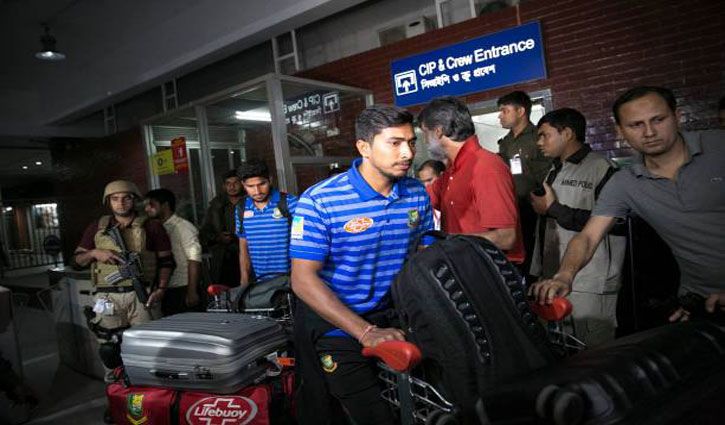 A Singapore Airlines flight carrying the Bangladesh cricket team landed at the Hazrat Shahjalal International Airport at 10:40pm.