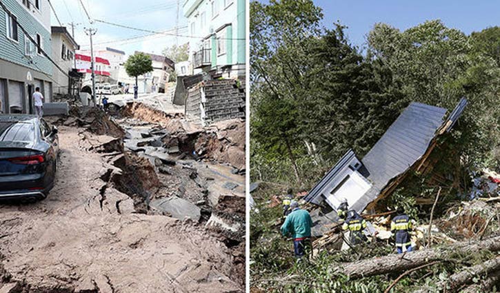 Photos from Sapporo, Hokkaido's main city on the western part of the island, showed huge cracks in the street and subsided houses.