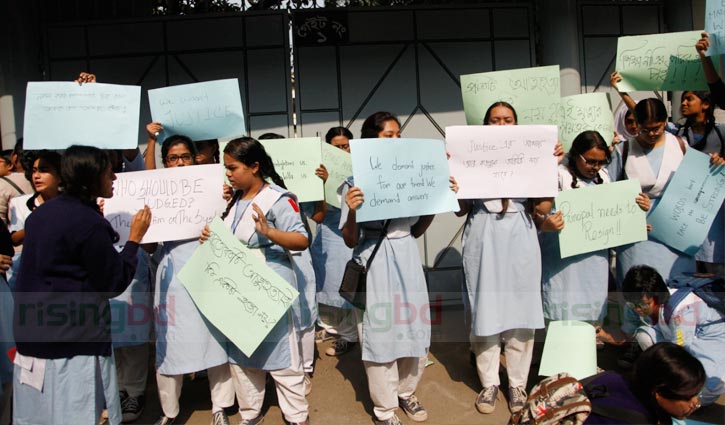 Their demands include resignation of the school’s principal Nazneen Ferdous and morning shift in-charge Zinnat Ara, cancellation of the school’s governing body and ensuring exemplary punishment for those who provoked the suicide.