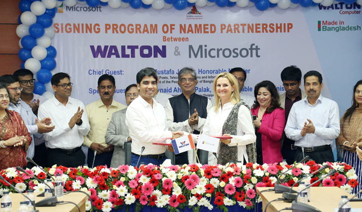 Economic Reporter: The local electronics giant Walton inked a partnership deal with the world’s largest software manufacturer Microsoft to get the original Windows software, which will be used in Walton brand laptops and computers.