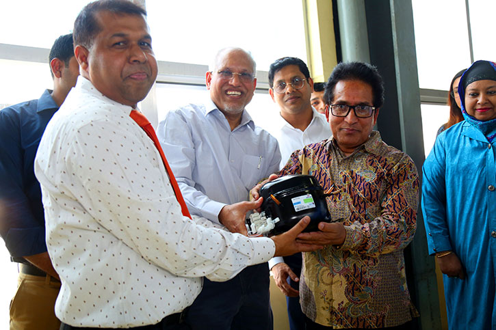 NBR Chairman Mosharraf Hossain Bhuiyan is seeing a compressor which is produced at Walton Hi-Tech Industires Limited at Chandra in Gazipur on Saturday.