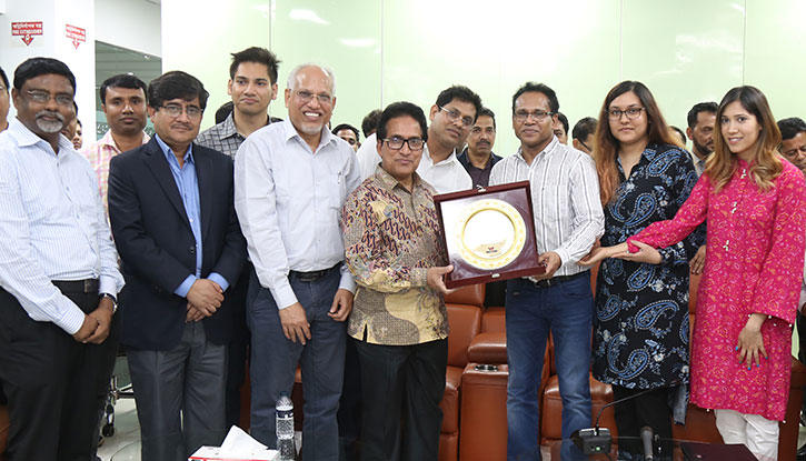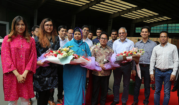 They were welcomed with a bouquet by Walton Hi-Tech Industries Limited Vice-Chairman SM Shamsul Alam, Managing Director SM Ashraful Alam and Director SM Rezaul Alam.