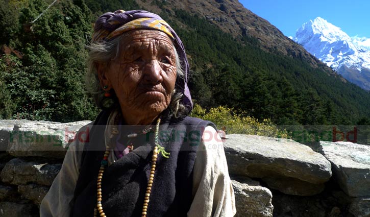 ইকরামুল হাসান শাকিল: পানি আর চকলেট খেয়ে আবার উপরের দিকে হাঁটা শুরু করলাম। কিছু সময় হাঁটার পর আমরা চলে এলাম ১২,৬৬৫ ফুট উচ্চতায় এভারেস্ট ভিউ হোটেলের কাছে। আবহাওয়া অনেক ভালো। রোদ আছে। মেঘও নেই। প্রথমেই দেখতে পেলাম রাজসিংহাসনের মতো দু’হাত প্রসারিত করে মাথা তুলে দাঁড়িয়ে আছে মাউন্ট আমা-দাব্লাম। আমরা যে দু’টি পর্বত অভিযানে এসেছি মাউন্ট আমা-দাব্লাম একটি। পেছনেই সবার উপর দিয়ে মাথা তুলে দাঁড়িয়ে আছে শ্বেতশুভ্র পবিত্র সাগরমাতা। পৃথিবীর সর্বোচ্চ চূড়া মাউন্ট এভারেস্ট।