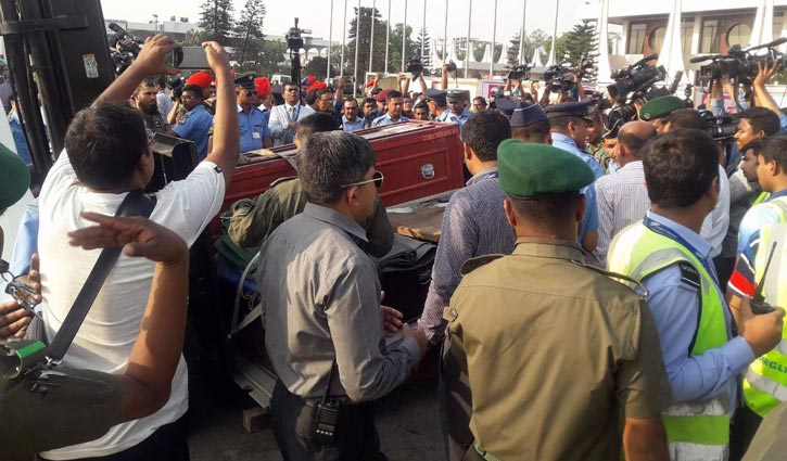 The cargo flight carrying the bodies landed at Hazrat Shahjalal International Airport around 4:00 pm.