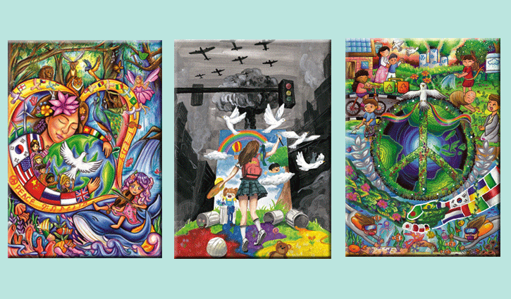 Kanoknuch Klahan (Thailand, Sripruetta School, High School division), who had the honor of winning the Grand Prize, said, “With this picture, I want to communicate the unity of the people of each country in the world. May everyone on this planet help to make peace grow.”