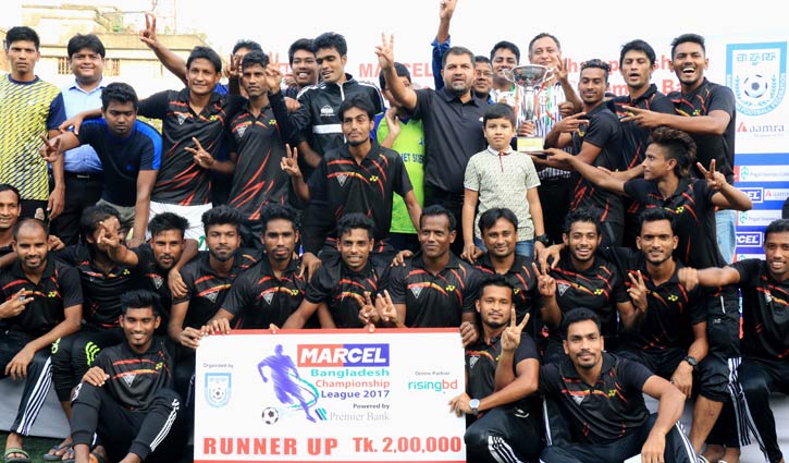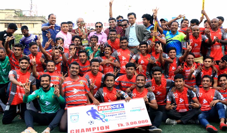 ক্রীড়া প্রতিবেদক : প্রথমবারের মতো দশটি দলকে নিয়ে ৬ আগস্ট মাঠে গড়ায় মার্সেল বাংলাদেশ চ্যাম্পিয়নশিপ লিগ। তিন মাসের মাথায় আজ শেষ হয়েছে এই লিগ। ১৮ ম্যাচ থেকে ৩৫ পয়েন্ট সংগ্রহ করে চ্যাম্পিয়ন হয়েছে নবাগত দল বসুন্ধরা কিংস। সমান ম্যাচ থেকে ৩২ পয়েন্ট নিয়ে রানার্স-আপ হয়েছে আরেক নবাগত দল নোফেল (নোয়াখালী-ফেনী-লক্ষ্মীপুর)।