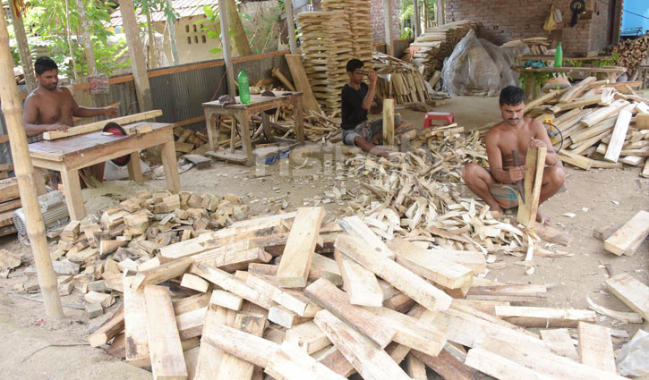 একই এলাকার মহাজেরপাড়ায় কারখানা দিয়েছেন এক সময়ের ফার্নিচার মিস্ত্রি তরিকুল ইসলাম। তিনি বলেন, ‘রোজার কারণে কাজ প্রায় বন্ধ ছিল। সেসময় ব্যাট পুডিং, ঘষামাজা, রঙ আর প্যাকেটজাতের কাজ করছেন দুজন নারী শ্রমিক। একশ’ব্যাটে তারা পাবেন ৮০ টাকা। নতুন করে আবার কাজ শুরু হয়েছে।