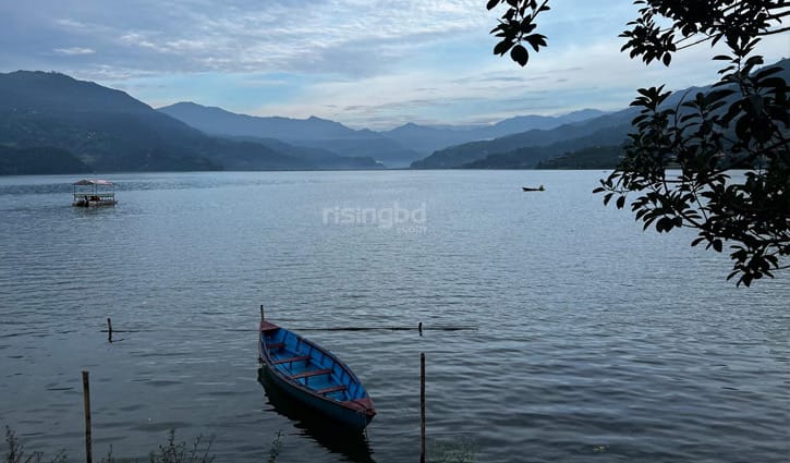 ফেওয়া লেকের শান্ত জলে পাহাড়ের ছায়া