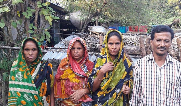চর লরেন্স গ্রামের আবদুল মালেক, যিনি বাবাকে হারিয়েছেন। পাশে দাঁড়ানোর তিন নারী শ্বশুড়-শাশুড়ি, দেবর-ভাসুর সব হারিয়েছেন