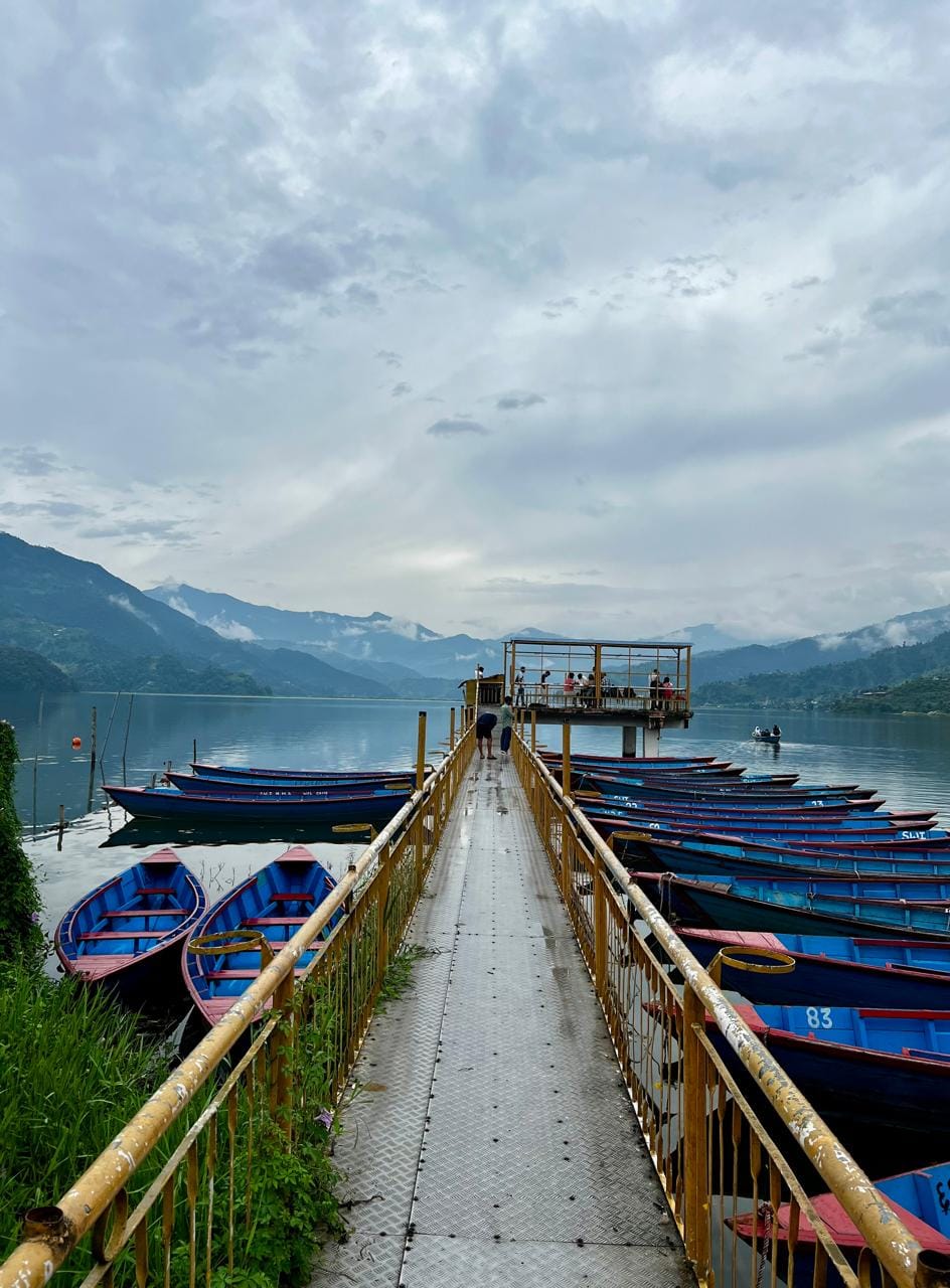 ফেওয়া লেকের পাড়ে পর্যটকদের জন্য নৌকার সারি