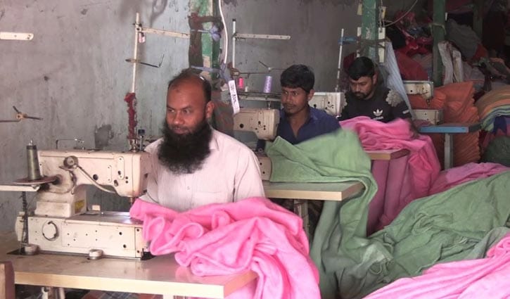 কম্বলের কাপড় সেলাইয়ে ব্যস্ত কারিগররা
