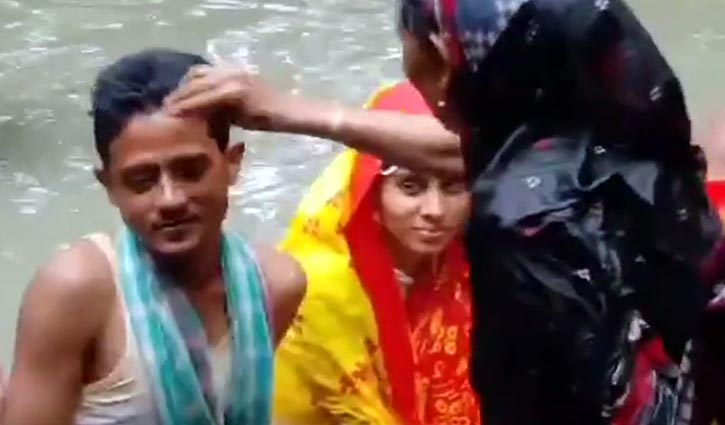 জোয়ারের পানির মধ্যে বর-বধূর গায়ে হলুদ