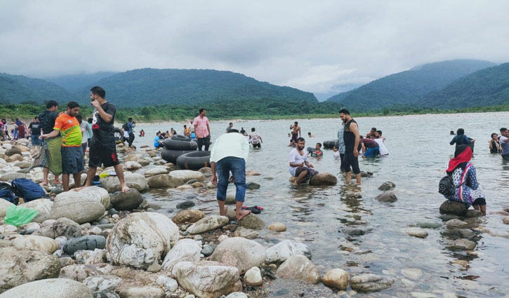 শনিবার (২১ আগস্ট) সিলেটের জাফলং, বিছনাকান্দি, ভোলাগঞ্জ, রাতারগুলে দর্শনার্থীদের ভিড় রয়েছে বলে জানিয়েছেন স্থানীয়রা। দলবেঁধে দূর থেকেও অনেকে ঘুরতে এসেছেন। তবে বেশিরভাগ দর্শনার্থীর মুখে ছিলো না মাস্ক। স্বাস্থ্যবিধি মানার প্রবণতাও ছিল কম।