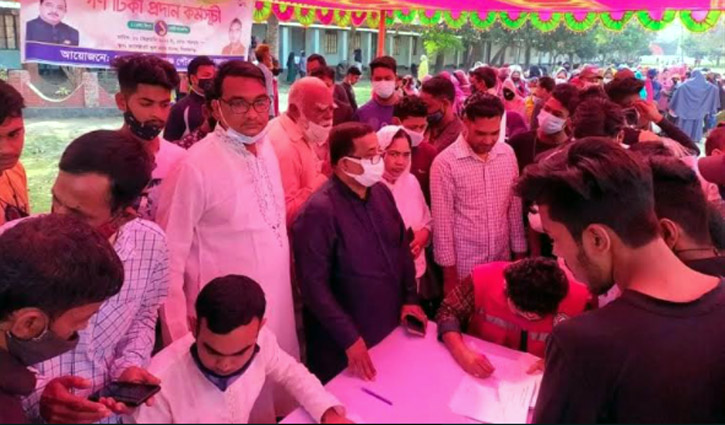 সকাল সাড়ে ১০ টায় সরেজমিনে গিয়ে দেখা যায়, কলেজের মাঠে টিকা দেওয়া হচ্ছে। সেখানে মানুষের দীর্ঘ লাইন রয়েছে।