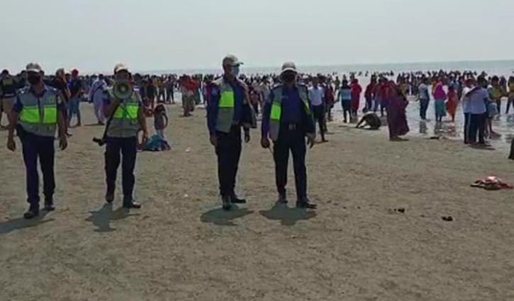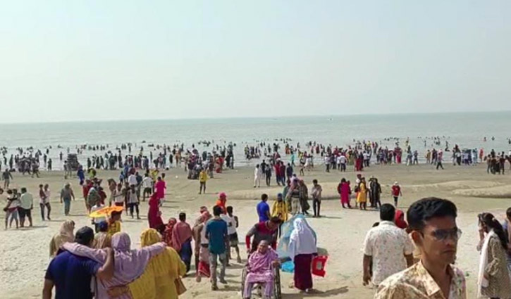 কুয়াকাটা সৈকতে পর্যটকের ঢল, তিল ধারণের ঠাঁই নাই