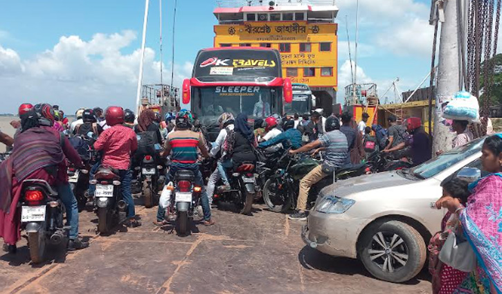 শনিবার (১৬ জুলাই) সকাল থেকেই ঘাটে ঢাকামুখি যাত্রীদের চাপ দেখা যায়। যাত্রীদের পাশাপাশি ব্যাক্তিগত গাড়ি ও মোটরসাইকেলের চাপও ছিলো চোখে পড়ার মতো। বেলা বাড়ার সঙ্গে সঙ্গে যাত্রী ও যানবাহনের চাপ বেড়ে যায়।