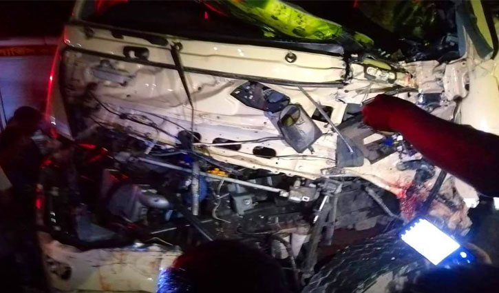 ঠাকুরগাঁও সদর থানার উপপরিদর্শক (এসআই) হারুন ও ঠাকুরগাঁও ফায়ার সার্ভিস ও সিভিল ডিফেন্সের ওয়ারহাউস ইন্সপেক্টর সারোয়ার হোসাইন জানান, ঠাকুরগাঁও বাস টার্মিনাল এলাকার মনতাজ হোটেলের সামনে ঢাকা- ঠাকুরগাঁও মহাসড়কে একটি কার্গো কাভার্ডভ্যান রাস্তায় দাঁড়িয়েছিল। ঢাকা থেকে একটি মালবাহী ট্রাক এসে দাঁড়িয়ে থাকা কার্গোর পেছনে ধাক্কা দেয়। এতে ট্রাকটির সামনের অংশ দুমড়ে মুচড়ে যায় ও ট্রাকের ভেতরে থাকা হেলপার চাপা পড়ে। পরে ফায়ার সার্ভিসের কর্মীদের সহযোগিতায় ওই হেলপারকে উদ্ধার করে ঠাকুরগাঁও জেনারেল হাসপাতালে নিয়ে যাওয়া হয়। তবে ট্রাকের ড্রাইভারের কোন খোঁজ পাওয়া যায়নি।