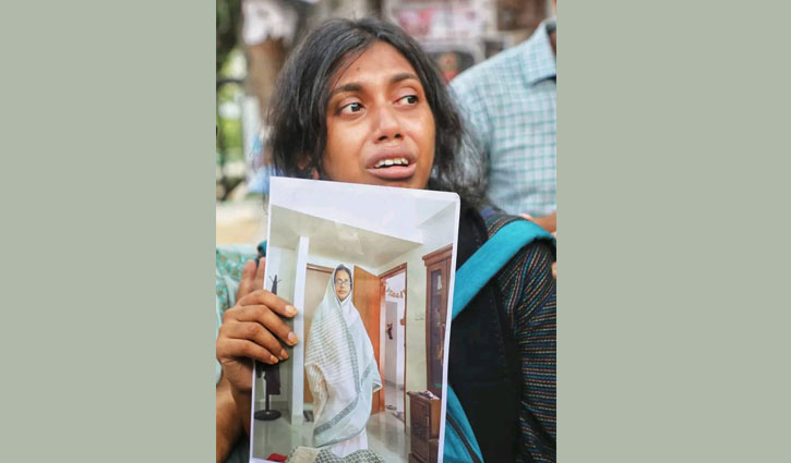 মায়ের ছবি হাতে মরিয়ম। ছবি মরিয়মের ফেসবুক থেকে নেওয়া