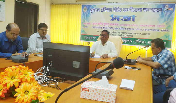 মঙ্গলবার (২৭ সেপ্টেম্বর) রাজশাহীতে পশ্চিম রেলের মহাব্যবস্থাপকের কার্যালয়ের সম্মেলন কক্ষে অংশীজনের অংশগ্রহণে এই সভা অনুষ্ঠিত হয়।