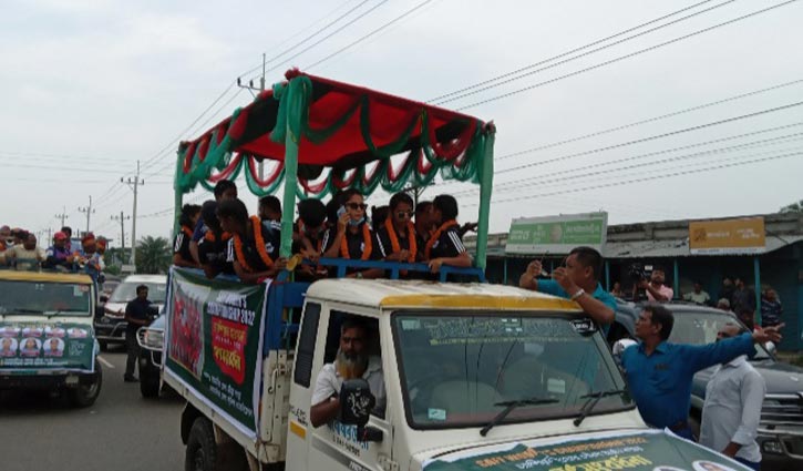 ছাদখোলা পিকআপে নগরীতে ঘুরলেন সাফজয়ী ৮ ফুটবলকন্যা