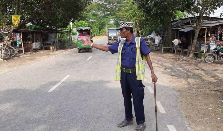সেখানে নিজের উদ্যোগে গত তিন বছর ধরে ট্রাফিক নিয়ন্ত্রণ করে সড়কে স্বস্তি এনে দিয়েছেন লুৎফর রহমান (৬৫)। তবে এ কাজের জন্য কোনো প্রতিষ্ঠান থেকে পারিশ্রমিক পান না তিনি। কেউ যদি খুশি হয়ে দু-চার টাকা দেন, তা দিয়েই কোনো রকমে চলে সংসার।