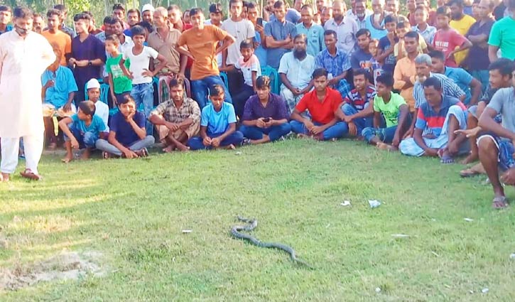 ফরিদুল ইসলাম নামের অপর একজন বলেন, ‘সাপ নামে পাতা খেলা আমাদের গ্রামে কখনও হয়নি। তাই দেখতে এসেছি। মন্ত্রের মধ্য দিয়ে খেলোয়ার তার দিকে সাপকে টানছে। এটা একটা অদ্ভুত খেলা।’