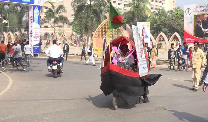 শহর আলী বলেন, ‘আজ প্রধানমন্ত্রী শেখ হাসিনার জনসভা আছে। তাই এই নৌকা নিয়ে এসেছি। মানুষকে আনন্দ দেব, নিজেও আনন্দ পাব।’