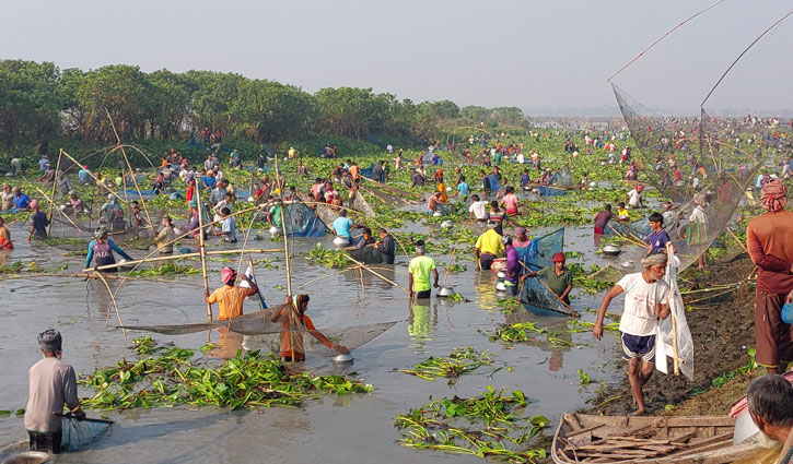 চলনবিলে মাছ ধরার বাউত উৎসব