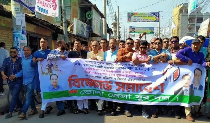 যুবদলের সভাপতিকে গ্রেফতারের প্রতিবাদে ভোলায় বিক্ষোভ