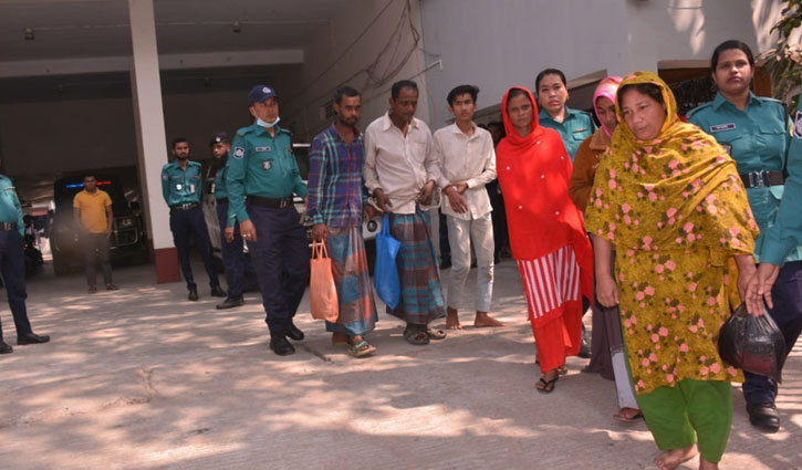 গ্রেপ্তাররা হলেন— সুমী শীল ওরফে সুমী সরকার (৪৫), মোছাম্মৎ লাকী বেগম ওরফে লাকী আক্তার ওরফে লাকী (৩৭), মো. আকিব (১৯), বেলাল হোসেন (৪০), হাবিবুর রহমান মজুমদার (৩০) ও রোজিনা আক্তার (৩২)।