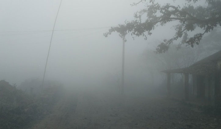 দিনাজপুরে ঘনকুয়াশা, হেডলাইট জ্বালিয়ে চলছে যানবাহন
