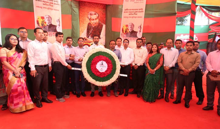 এর আগে, সকালে জাতির পিতা বঙ্গবন্ধু শেখ মুজিবুর রহমানের প্রতিকৃতিতে পুষ্পস্তবক অর্পণের মধ্য দিয়ে অনুষ্ঠানের সূচনা হয়।