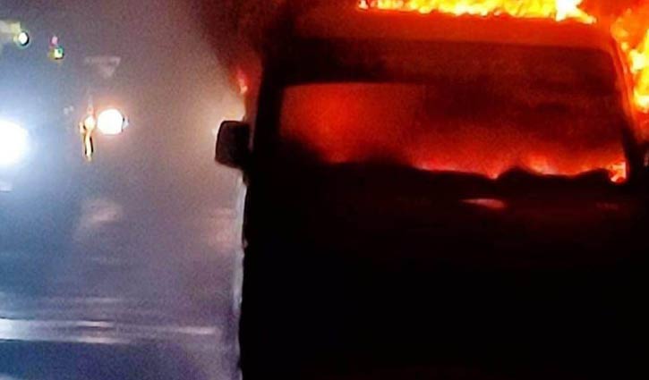 মহাসড়কে চলন্ত পিকআপে আগুন