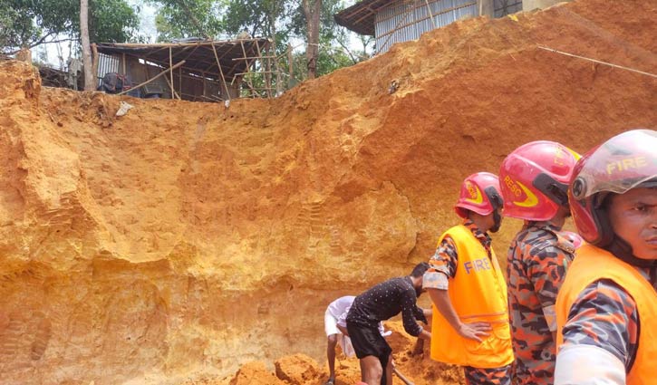কক্সবাজারের উখিয়ায় পাহাড় কাটতে গিয়ে মাটি চাপা পড়ে তিন রোহিঙ্গা শ্রমিকের মৃত্যু হয়েছে। এঘটনায় নিখোঁজ একজনকে উদ্ধারে কাজ করছে ফায়ার সার্ভিস।