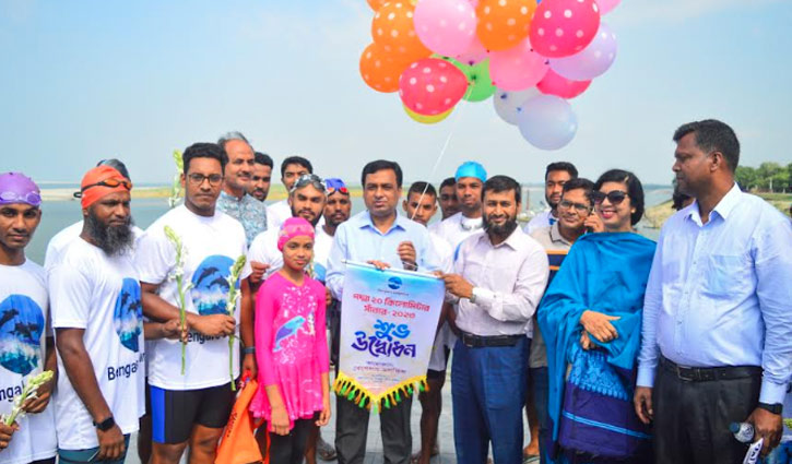 পদ্মায় ২০ কিলোমিটার সাঁতরালেন ২৭ সাঁতারু