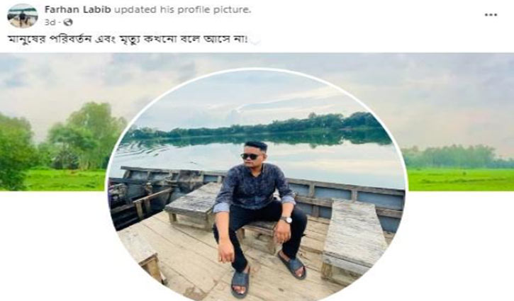 ‘মৃত্যু কখনো বলে আসে না’- লিখে ফেসবুকে পোস্ট করার তিনদিনের মাথায় সড়ক দুর্ঘটনায় মারা গেছেন ফারহান লাবিব (২২) নামের এক বাইকার।