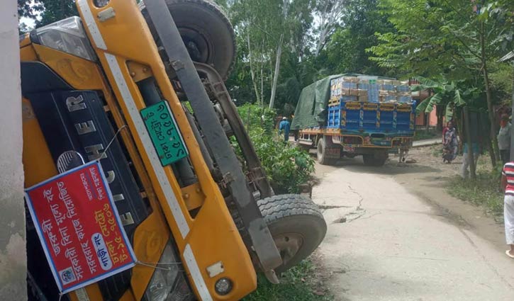 মির্জাপুরে প্রাথমিকের নতুন বই নিয়ে ট্রাক পুকুরে