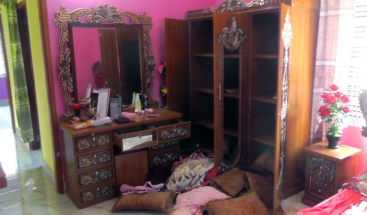 তিনি বলেন, ভয়ে তাদের একটি ড্রেসিং টেবিলের তালা খুলে দেই। বাকিগুলো খুলে দিতে রাজি না হওয়ায় আমাকে তাদের হাতে থাকা অস্ত্র দিয়ে আঘাত করে। পরে তারা অন্যান্য আসবাবপত্র ভাঙচুর করে।