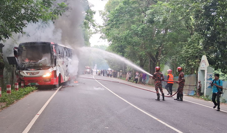 গোপালগঞ্জে বাস-ইজিবাইক সংঘর্ষে নারীসহ নিহত ২, বাসে আগুন