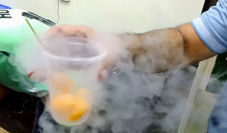 সরেজমিন দেখা যায়, হোটেলে ভিতরে কয়েক জন গ্রাহক প্লাস্টিকের অনটাইম গ্লাস থেকে কাঠি দিয়ে বের করে কী যেন খাচ্ছেন। যা থেকে অনবরত ধোঁয়া বের হচ্ছে। এমনকি মুখে দিয়ে চিবানো শুরু করলেও নাক-মুখ দিয়ে ধূমপান করার মতোই ধোঁয়া বের হচ্ছে। হঠাৎ যে কেউ দেখলে ধূমপান মনে হবে। খাবারটি বেশ ঠান্ডা এবং খেতেও বেশ সু-স্বাদু বলে জানালেন ভোক্তারা। এখানে অনেকে স্বপরিবারেও খেতে আসছেন।