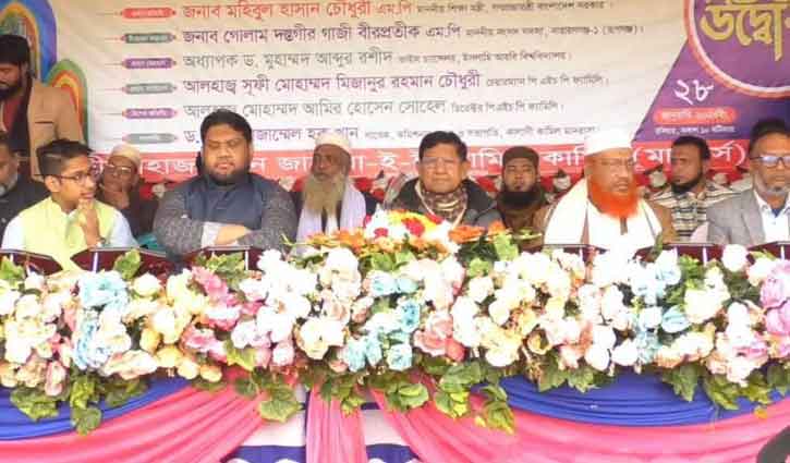 এর আগে, ফিতা কেটে মাদরাসার নবনির্মিত ‘সূফী মিজান’ ভবন উদ্বোধন করেন নারায়ণগঞ্জ-১ আসনের সংসদ সদস্য গোলাম দস্তগীর গাজী বীর প্রতিক।